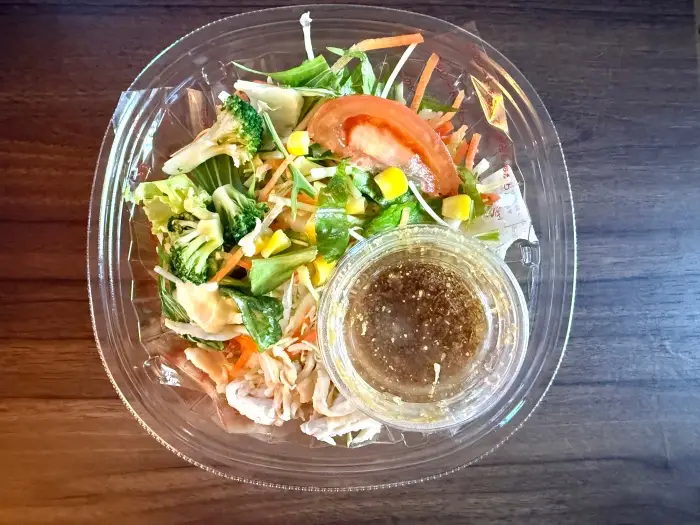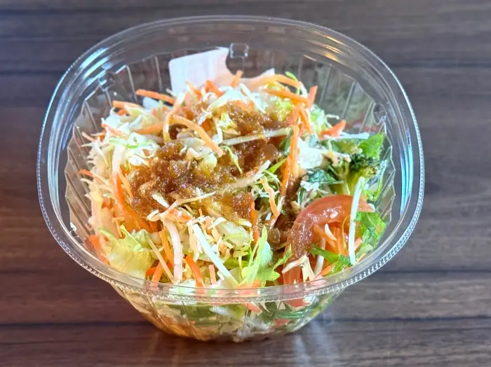 サラダという名前ですが、揚げ麺が入っていることで炭水化物もしっかり摂れ、ボリュームは十分。これ一つでランチを済ませることも可能です。