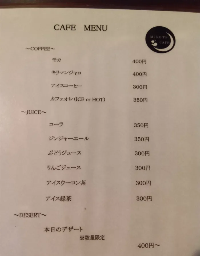 | 店名 | MI・KO・TO CAFE(ミコトカフェ) |