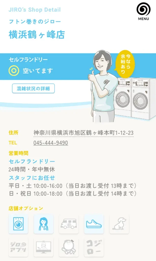 営業時間セルフランドリー: 24時間・年中無休 スタッフ対応(おまかせ洗い):