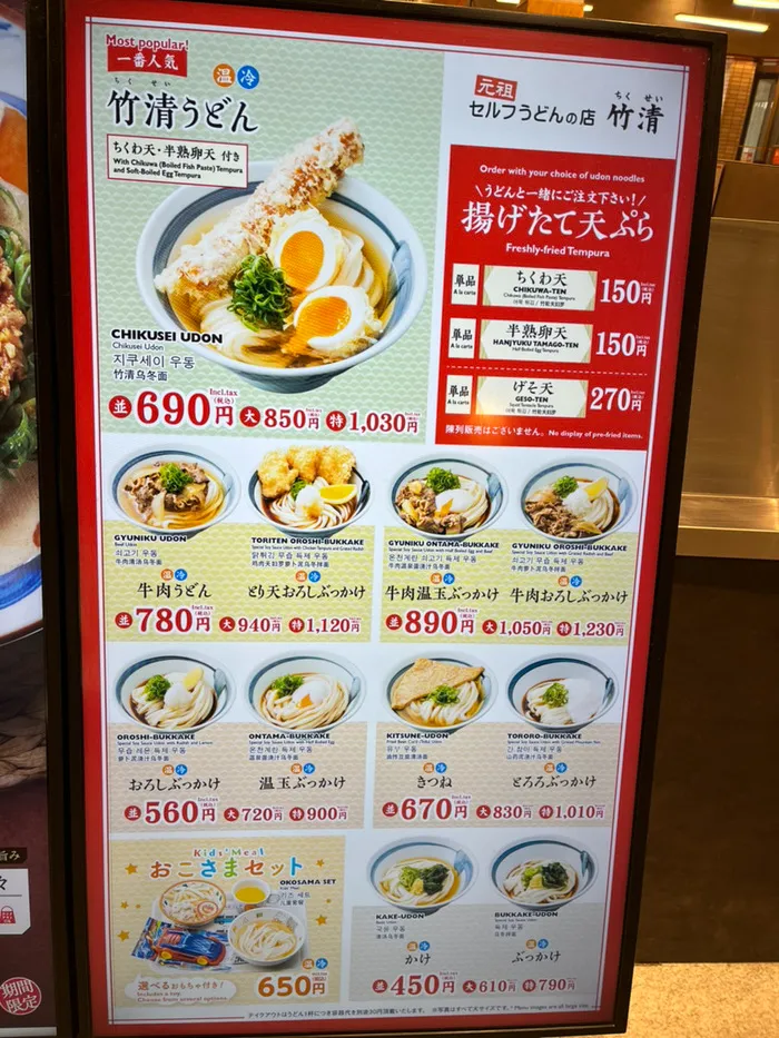 「竹清 アリオ倉敷店」は、本場讃岐の味とセルフの楽しさを手軽に体験できる、魅力あふれるお店でした。特に揚げたての天ぷらは、一度味わう価値があります。