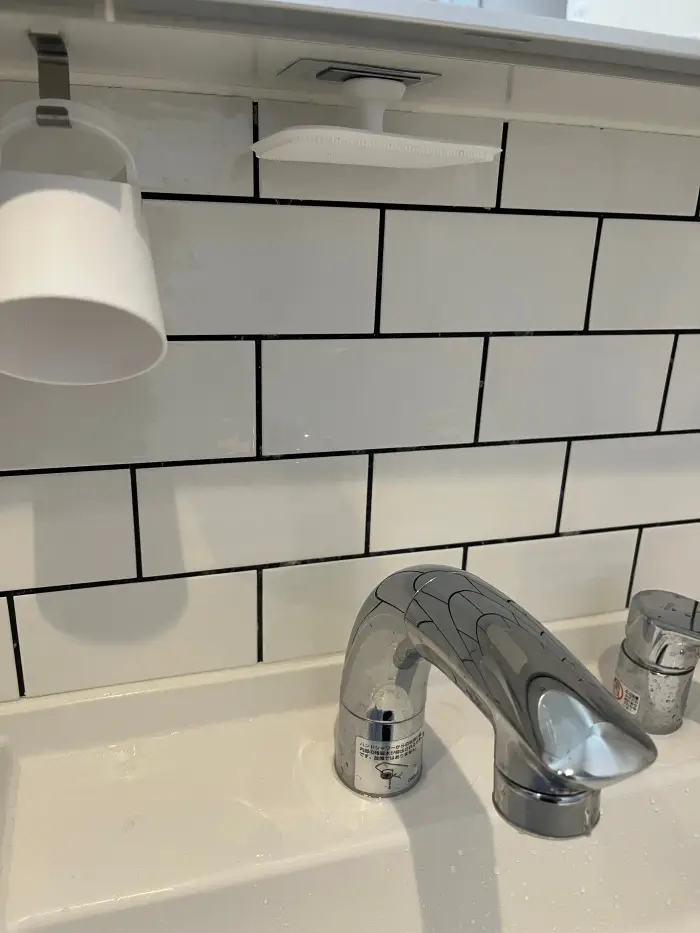 私は、水が跳ねても問題なく、かつサッと手に取りやすい位置を選んで貼り付けました。この小さな工夫で、使い勝手が格段に向上しました。