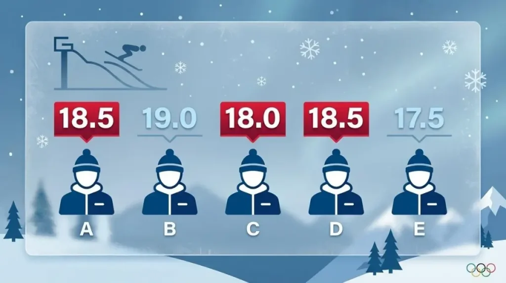 1本目を終えて4位だった船木選手は、逆転をかけた大一番で132.5mの大ジャンプを決めました。そして、何がすごかったかというと、着地のテレマーク姿勢(スキーの片足を前後に開いて着地する技術)も完璧に決まり、なんと審判員5人全員が20点満点をつけたのです。オリンピックの歴史上、これは初めての快挙でした。