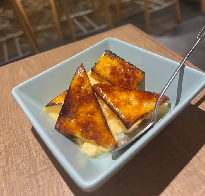 〆の「自家製カタラーナ」は、表面のカラメルがパリッと香ばしく、中のクリームは濃厚でなめらか。デザートまで一切手抜きがない姿勢に、お店のこだわりを感じました。