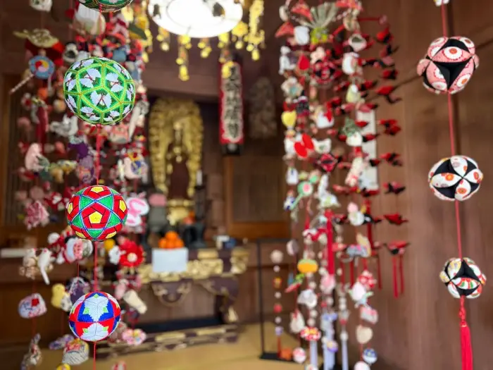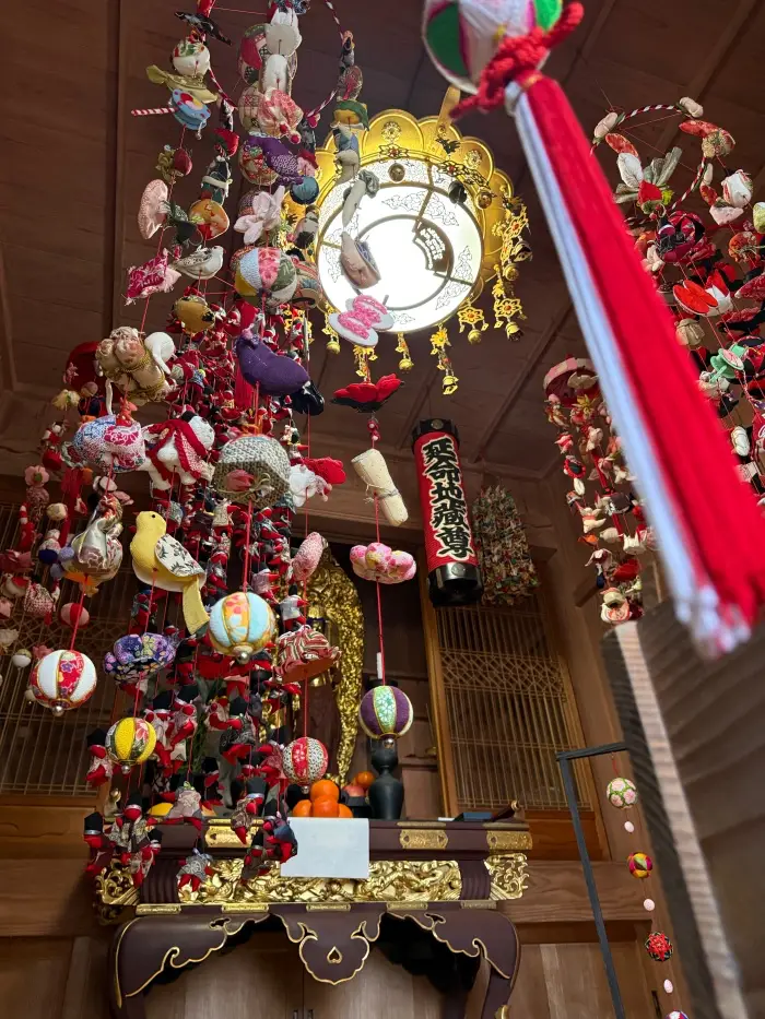 ちなみに、この覚翁寺の手前にある「延命地蔵尊」を祀るお堂も、お祭り期間中は「つるし雛」で美しく彩られます。