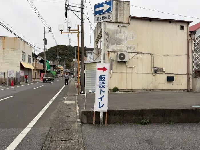 勝浦駅からは主要会場の遠見岬神社まで徒歩約10分とアクセスも良好です。また、街の至る所に仮設トイレの案内があり、観光客への配慮が感じられました。