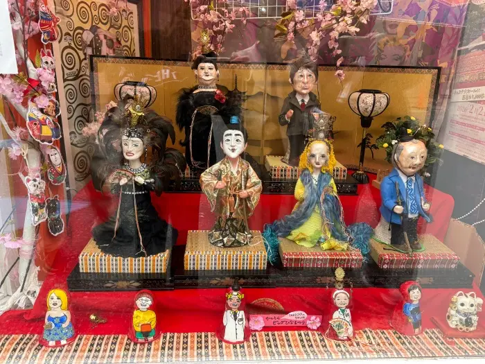 そして、この祭りのもう一つの醍醐味が、商店街を歩きながら見つける「変わり雛」。各店舗が趣向を凝らした展示は、見ているだけでワクワクします。