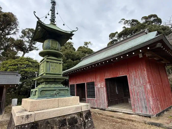 境内には青銅製の立派な宝篋印塔(ほうきょういんとう)もあります。天保13年(1841年)に石神村の鋳物師・鈴木伝左衛門正尹によって鋳造されたもので、南房総市の指定文化財です。