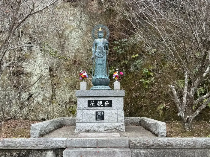 旧尾形家住宅の奥へと続く小道を進むと、花観音が佇むエリアへたどり着きます。