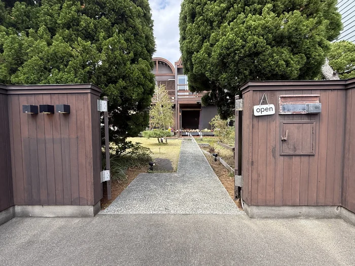 木製のゲートに「open」のサイン。奥へと続くアプローチにワクワクします