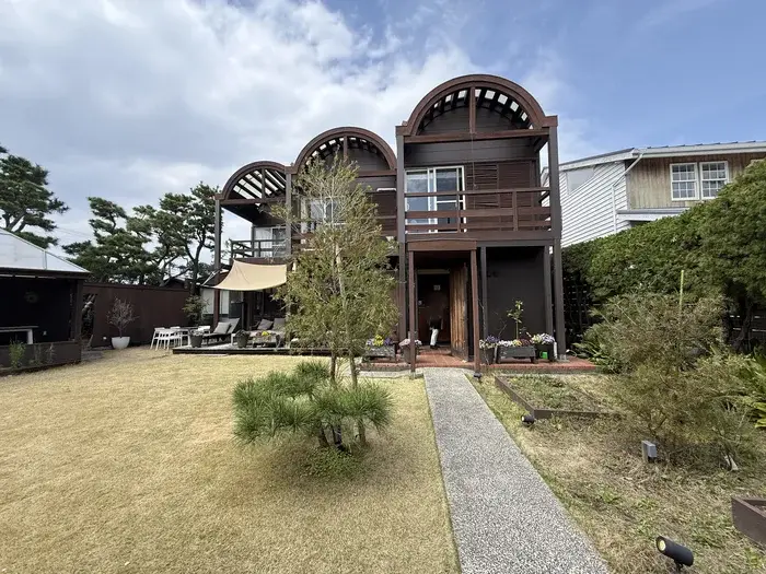 アーチ状の屋根が特徴的な2階建ての木造建築は、まさに「素敵な一軒家」。