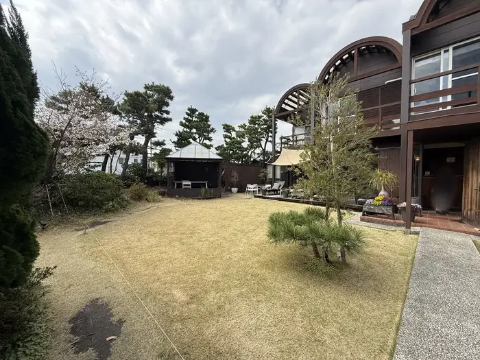 ゲートをくぐると、そこには広くておしゃれなガーデンが広がっています。