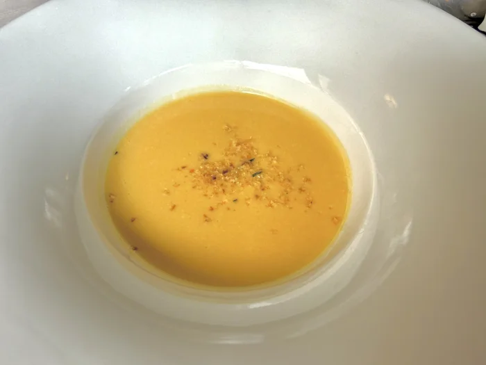 続くポタージュは、にんじん、玉ねぎ、さつまいもの自然な甘みが体に染み渡る優しいお味でした。
