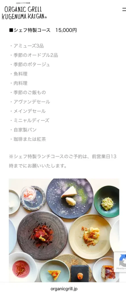 今回は記念日だったので、予約したのは一番高いプランの「シェフ特製コース」です。他にもコースは複数あるので、その時のシチュエーションによって選ぶことができます。
