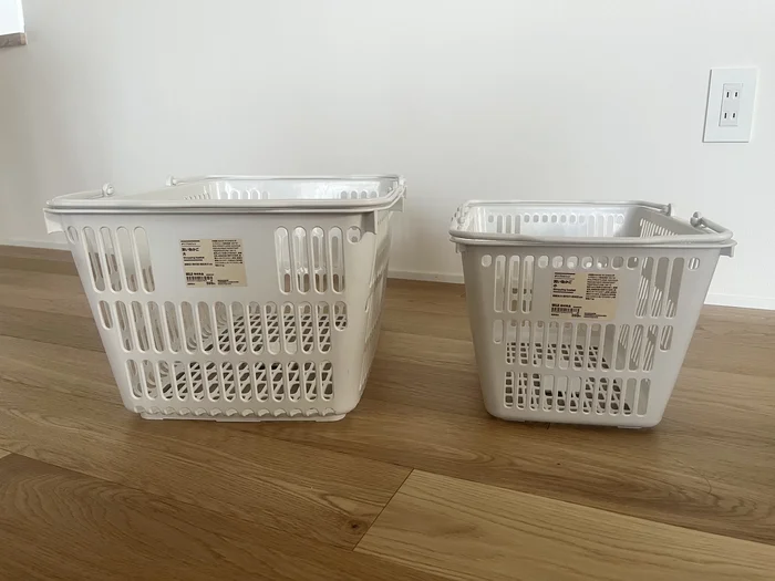 今回購入したのは、無印良品の「ポリプロピレン 買い物かご」の大サイズと小サイズです。無印良品週間を利用して、少しお得に手に入れることができました。